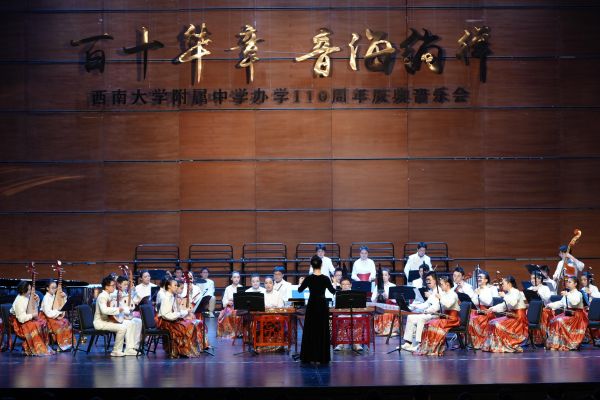本次音乐会是西南大学附中常态化开展美育实践的一个缩影。多年来,西南大学附中坚持为学生一生的生涯幸福奠基,将美育作为育人方式改革创新的重点,通过开设京剧社团、打击乐团、琴瑟乐团、汉服社、绘画社等20余个缤纷多样的美育社团,开展师生美术画作展、美育名家论坛、美育课程展示等每年近20场次的美育活动,创新美术教育形式,构建了“一核多维”学科美育课程体系,将学科课程、跨学科课程与综合实践课程多个维度上的知识、逻辑、形式、体验等进行审美化地构造和呈现,让学生在艺术中感受美的力量,全面培养学生的审美情趣和创新能力。