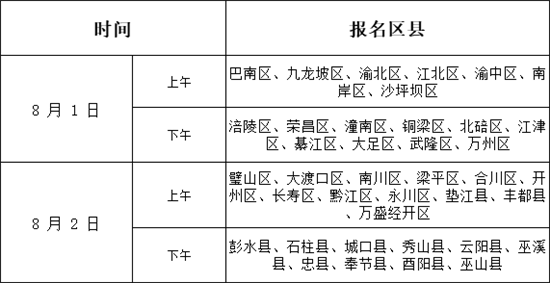 1. 以上时间安排请考生根据本人户籍所在地对应区县(自治县)按时参加,户籍所在地为重庆市以外的按学校所在地对应区县(自治县)按时参加。