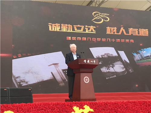 重庆八中校长周迎春致辞,当记忆穿越八十年时光,八十年栉风沐雨,八十年奋进拼搏,多少教师在三尺讲台上无悔挥洒青春,多少学子在校园激情演绎青春,今天庆典的相聚只为大家青春的纪念!学校五易其名,从“树人学校”最终定格为“重庆八中”。80年的道路,既曲折艰难,也壮阔磅礴八十年岁月沧桑,八十年青春永恒!乘风破浪八十年,如今扬帆再起航。