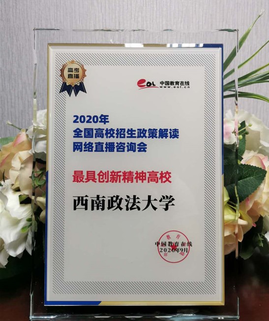 在评选中,西南政法高校凭借创新的直播形式,在近500所高校中脱颖而出,获得“最具创新精神高校”殊荣。这一奖项的获奖高校,立足直播特点,结合本校特色,以独具匠心的直播形式给考生和家长耳目一新的体验,收获了良好的关注度与互动量。