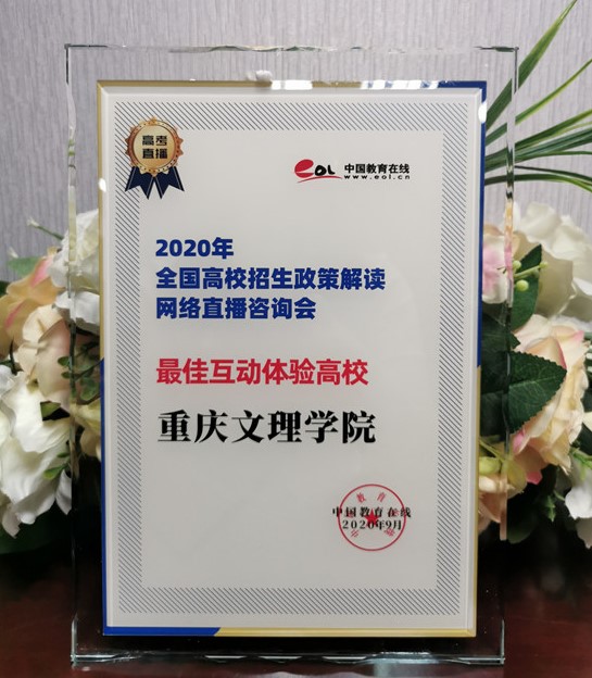 在评选中,重庆文理学院凭借极具亲和力的直播方式,在近500所高校中脱颖而出,获得“最佳互动体验高校”殊荣。这一奖项的获奖高校,立足直播特点,结合本校特色,以全面详细的宣讲给考生和家长良好的体验,收获了观看考生、家长的热情回应。
