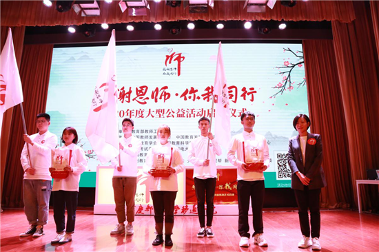 仪式上,与会领导共同按下启动台按钮,启动2020年度“感谢恩师·你我同行”大型公益活动。