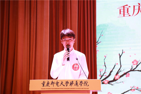 重庆邮电大学移通学院感恩大使代表程雪磊进行发言。