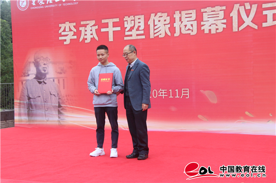 “感谢母校的辛勤培养和老师们的谆谆教诲!祝母校的建设发展更上一层楼。”仪式上,李顶生表示,适逢母校建校80周年之际,作为重庆理工大学2015级产品设计专业的学生,发挥自己的专业所长,设计制作了首任校长李承干先生的塑像,十分荣幸以此表达对老校长的敬仰和怀念,对母校的感恩和致敬。