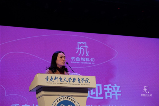 成立仪式上,重庆邮电大学移通学院副校长王征致欢迎辞。她首先向莅临指导的各位教授作家、老师同学们表示热烈欢迎。她谈到,在移动互联和人工智能的全面发展的当下,教育的核心要义要回归对人的培养和关注。钓鱼城科幻中心是学校重要的创新平台,立足校园科幻教育,举办国际一流的科幻大奖和面向社会的创意写作工坊,为中国科幻事业培养创新力量,打造完全公益性、高度国际化的亚洲最大科幻中心。她表示,之所以建立大奖与成立科幻社,是因为学校始终把科幻作为一种有价值的学习资源和教育教学的载体,利用科幻的特点为学生提供学习和展示的平台。王校长传达出对钓鱼城科幻大奖和钓鱼城科幻社未来发展的美好期盼与鼓励,她希望大家能够积极参与到这场年轻的科幻的浪潮中,去逐梦踏浪。