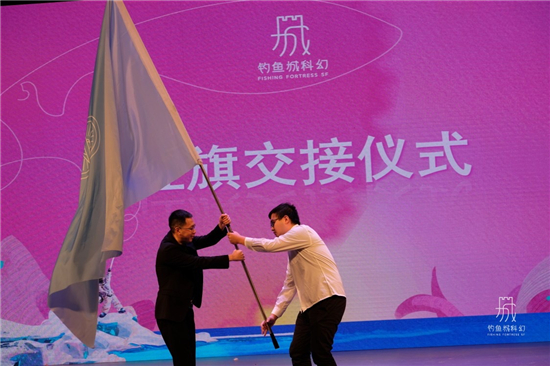 团委副书记谢银平宣读《重庆邮电大学移通学院科幻社成立文件》,宣布重庆邮电大学移通学院钓鱼城科幻社正式成立。重庆邮电大学移通学院钓鱼城科幻中心主任张凡与钓鱼城科幻社社长何育航进行了社旗交接仪式。