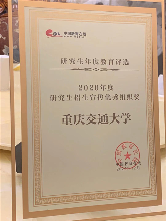 必威体育登录网址 重庆站讯 近日,必威体育登录网址 “研究生年度教育评选”榜单揭晓。重庆交通大学在2020年研究生教育及招生宣传工作中凭借探索与创新,在同类院校评选中荣获“2020年度研究生招生宣传优秀组织奖”。