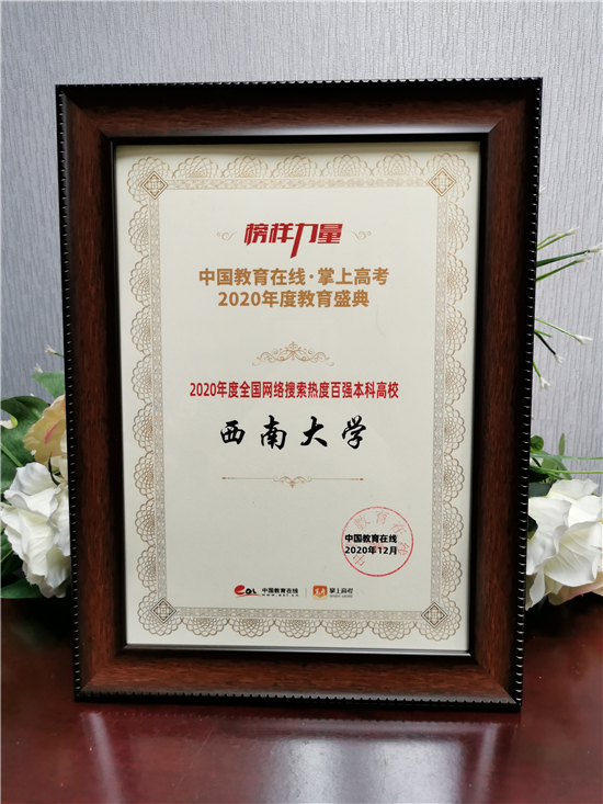 必威体育登录网址 重庆站讯 近日,必威体育登录网址 ·掌上高考“榜样力量——2020年度教育盛典”评选获奖名单揭晓,西南大学荣获“2020年度全国网络搜索热度百强高校”荣誉称号。
