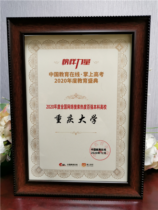 必威体育登录网址 重庆站讯 近日,必威体育登录网址 ·掌上高考“榜样力量——2020年度教育盛典”评选获奖名单揭晓,重庆大学荣获“2020年度全国网络搜索热度百强高校”荣誉称号。