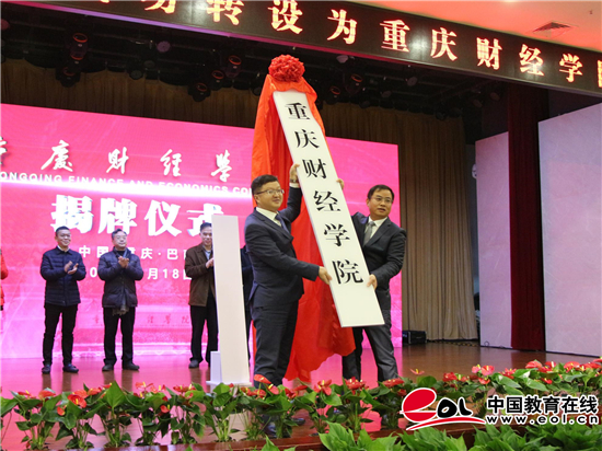 仪式上,在与会领导、嘉宾的见证下,杜积西、张毅和吴华安共同为重庆财经学院揭牌。