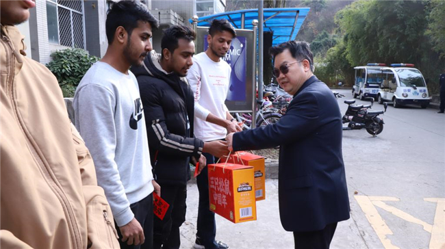 校领导代表学校党委、行政,对春节值守校园的全体同志表示诚挚的敬意和衷心的感谢,祝福大家新春愉快、阖家幸福,并叮嘱大家要严格落实学校疫情防控工作要求。校领导一行来到留校学生中间,与大家亲切交谈,并特别慰问了因疫情未能返乡的学生。受到慰问的同志和学生,深受鼓舞,表示一定谨记校领导嘱托,做好疫情防控各项工作,并在新的一年加倍努力,为学校教育事业高质量发展贡献更大力量。