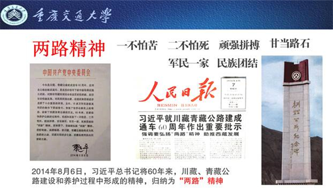 60余年来,“两路”精神在修筑、养护川藏、青藏公路的伟大实践中孕育而生,是习近平总书记亲自归纳提出的精神力量,是中国精神的重要组成部分。迈上加快建设交通强国的新征程,需要大力弘扬“两路”精神,凝聚磅礴力量,为实现中华民族伟大复兴中国梦不懈奋斗。