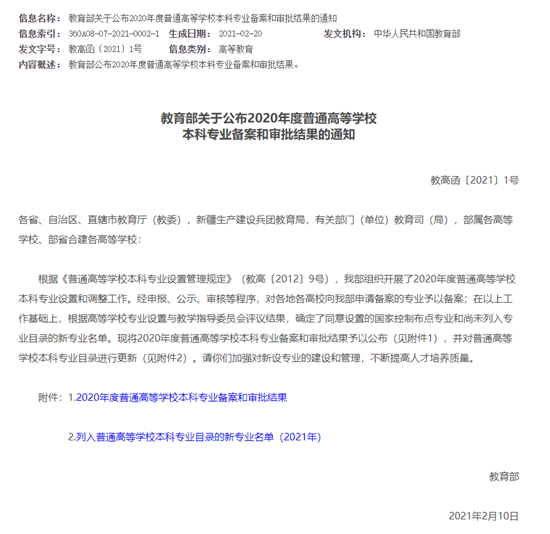 必威体育登录网址 重庆站讯 日前,教育部印发通知,公布2020年度普通高等学校本科专业备案和审批结果,确定了同意设置的备案专业、国家控制布点专业和新增目录外专业点名单。
