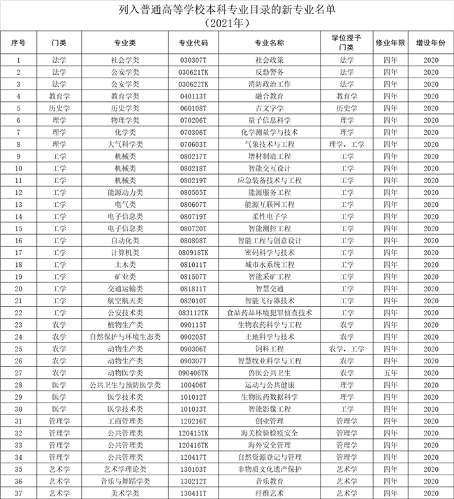 古文字学、量子信息科学、能源互联网工程、智慧交通、智能飞行器技术、创业管理、非物质文化遗产保护等37个新专业列入普通高等学校本科专业目录。