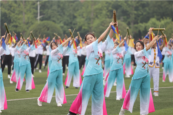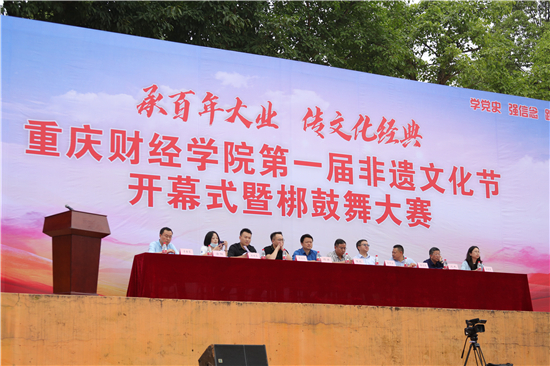 剪一张剪纸作品、唱一曲木洞山歌,跳一支梆鼓舞……在我国第十六个文化和自然遗产日到来之际,6月10日中午,重庆财经学院第一届美育文化节开幕式暨梆鼓舞大赛缓缓拉开帷幕,巴南区文化与旅游委员会副主任邓涛、巴南区文化馆馆长郑迎旭及重庆财经学院党委书记张毅、校长吴华安等领导和近千名师生共同参与本次活动。