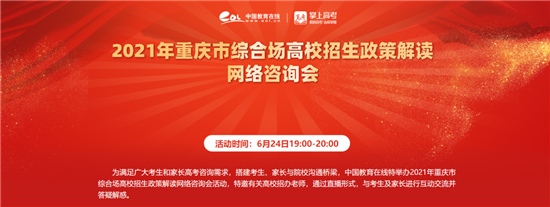 在每年的志愿填报中,很多考生和家长因缺乏权威渠道了解学校及专业信息,导致无法确定个人的志愿草表。为帮助大家准确、全面地了解高校今年的招生政策,搭建考生、家长与院校沟通桥梁,必威体育登录网址 特举办2021年重庆市综合场高校招生政策解读网络咨询会活动,特邀有关高校招办老师,通过直播形式,为重庆考生分享2021年招生录取政策新变化、专业报考要求、志愿填报注意事项等内容。