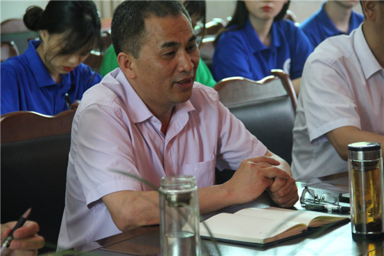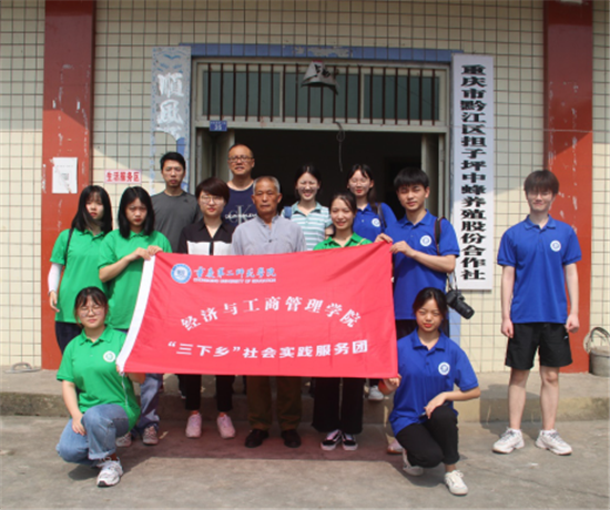 王贞六是黔江区当地脱贫致富带头人,从建卡贫困户到养蜂大户的“逆袭”,退役军人王贞六靠的是坚韧不拔的一股“钻”劲儿,当地人亲切地唤他“老王”。在采访中,王贞六积极为实践团成员们展示着他获得的全国脱贫攻坚奋进奖,深刻认识到搭建电商平台、利用科学技术进一步推进产业振兴的重要性和必要性。王贞六表示,创办中蜂养殖合作社初期其实并不顺利,面对乡亲们的不理解、不信任,年过七旬的王贞六拿着建档立卡贫困户名单,挨家挨户去宣传、去动员,也正是靠着一股不服输的韧劲,才有了合作社产业的日益兴旺发展。在下一步的工作中,王贞六正着手准备面向全镇中锋养殖农户,再办一期培训班,继续向蜂农们传授养蜂技巧,通过抖音、朋友圈等网络方式,把黔江的蜂蜜品牌宣传出去。