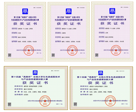 日前,第十四届“高教杯”全国大学生先进成图技术和产品信息建模创新大赛落幕。8月1日,重庆工程学院王刚、刘洲、王朝伟等15名学生凭借扎实的专业技能和沉着冷静的赛场应变能力,经历校赛、市赛的层层选拔,最终在第十四届“高教杯”全国大学生先进成图技术和产品信息建模创新大赛中荣获佳绩。通过建筑类的基础知识、尺规绘图、三维建模各环节的技能竞赛,重庆工程学院代表队最终共荣获省部级团队二等奖1项,省部级个人全能三等奖1项,国家级团队三等奖1项,国家级个人全能三等奖3项。