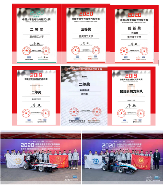 在创新方面。智能网联小车实验室研究生智行车队,在国内自动驾驶领域顶尖低速无人驾驶挑战赛事项目中,荣获低速无人驾驶挑战赛卓越奖。多名研究生参加了重庆金康赛力斯新能源汽车设计院有限公司的三支车队,参与了i-VISTA自动驾驶汽车挑战赛中的商业化进程挑战赛,均收获了不俗的成绩。智能机械臂实验室已开发出了桌面级3D打印的智能机械臂,可贯穿学生大学四年的学习历程,有效拓展了学生视野、激发了学生的创新思维和协作能力。迈特智创工作室着力打造出集“汽车原理动画”+“汽车实物讲解”+“汽车结构智能化教学产品”为一体的汽车技术资源库。小树创研工作室带领学生融合了产品系统创新、概念设计及品牌视觉传达为企业开发了两轮电动摩托车。汽车拆装构造工作室已成功制作了整车(电动货车)组合式教具1台,液压助力转向系统实验台1台,后驱动桥教具1台,各类变速器教具3台。两江新生创新工作室利用新引进设备开设多门智能制造面向实践的课程,学生初步掌握了逻辑控制原理、数电模电原理和电子电气相关知识,使其能够熟练运用单片机和智能机械臂,独立完成小件物品的3D打印,为后期专业课学习夯实了基础。重庆理工大学士继车队多次参加中国大学生汽车大赛的全方位实践和考核,截止目前共荣获全国二等奖6项、三等奖4项,并荣获创新奖二等奖、最具影响力车队、最佳视频奖等多项荣誉。