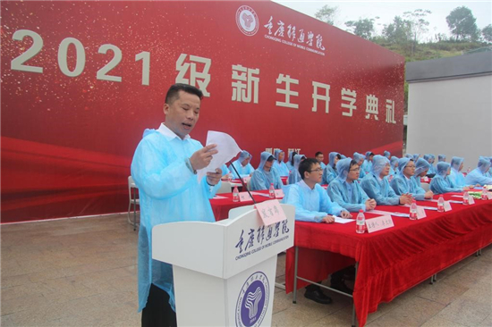 校长张德民教授,党委书记苏开荣教授,教育集团教学总顾问、綦江校区管委会顾问李长萍教授,副校长、綦江校区管委会主任王永周及全体在家校领导,各二级学院和职能部门负责人,校友代表,教师代表,2021级全体新生齐聚綦江校区田径运动场,无畏风雨,共同见证一场盛大庄重的典礼。典礼由重庆移通学院副校长、綦江校区管委会副主任李文豹主持。