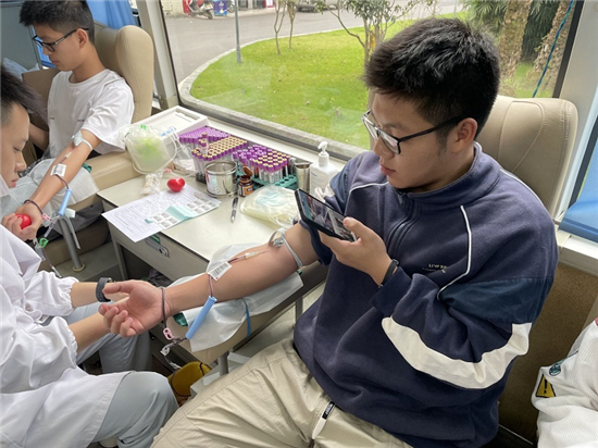 下课期间,献血车前同学们有序地排起长队,依次进行信息登记、血液类型检验、静脉采血等环节,其中不乏参加过好几次无偿献血活动的同学。“我身边的朋友也都在献血,既对自己的身体有好处,又能挽救更多的生命,为他人提供力所能及的帮助,一举多劳,何乐而不为呢?”重庆工程学院素质教育中心的易云丽老师15号一早就前来排队,参与无偿献血活动。“看到咱们重工这么多同学都积极献血,我非常感动,同时作为老师,我更是义不容辞的要参与到这样的正能量活动中!”涓涓细流汇成海洋,一股无偿献血的爱心热潮在重工校园内澎湃而起。