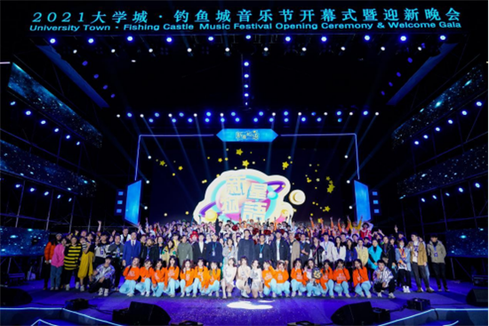 10月22日晚,享誉国内外的音乐品牌活动——重庆移通学院合川校区2021年“大学城·钓鱼城”音乐节以迎新晚会的成功举办拉开序幕,一场盛大的音乐盛典伴随强烈音波震撼校园。6个月的潜心准备,32位艺术指导老师,468名学生演出人员,520人工作团队;1000余人的汗泪,10余个演出节目,超2000名现场观众,近6万人次在线观看,1372.8万微博热搜阅读量。用艺术与梦想构筑的”火箭”,在北校区五人制足球场舞台上,轰动发射。