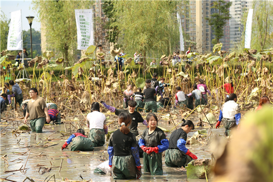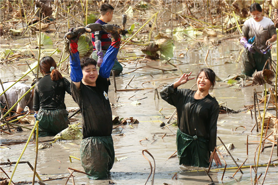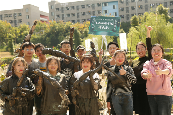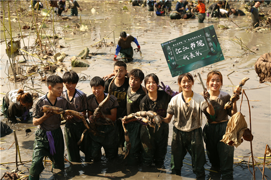 10月23日,重庆移通学院第三届“荷叶田田·藕趣横生”书院“家”校园荷塘文化节之“藕然心动”采藕展销大赛火热开展。160余名师生齐聚荷塘,经过2小时的采挖,共收获莲藕1600余斤,部分莲藕用于公益展销,获2124.79元销售额。活动在线上同步直播,1000余名“云监工”共同关注采藕进展,线上线下的火热关注为平日闲适幽静的荷塘带来新的生机。