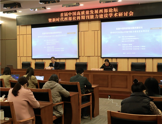 11月6日,由中国人民大学书报资料中心、中国社会科学院西部发展研究中心与重庆工商大学学术期刊社联合主办、重庆工商大学学术期刊社承办的“首届中国高质量发展西部论坛暨新时代西部社科期刊能力建设学术研讨会”在重庆工商大学图书馆成功举行。来自国务院发展研究中心、中国宏观经济研究院、中国社会科学院、北京大学、中国人民大学、四川大学、西北大学、西南财经大学、重庆大学、西南交通大学、河海大学、中南财经政法大学、首都经贸大学、西安财经大学、安徽财经大学、贵州财经大学、河南财经政法大学、福建省社科院、安徽省社科院、河南省社科院、《中国工业经济》《北京大学学报(哲学社会科学版)》《高等学校文科学术文摘》和《人大复印报刊资料》等100余家机构近200名专家学者和刊界同仁线上参加了此次会议。重庆工商大学校长孙芳城、副校长柏群及部分师生参加了现场会议。论坛开幕式由柏群主持。