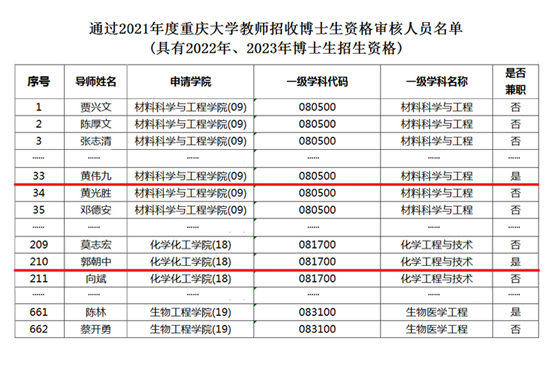 近日,根据《关于2021年度重庆大学教师招收博士生资格审核结果的通报》(重大校发〔2021〕116 号)和俄罗斯托木斯克理工大学、兹巴斯国立技术大学博士生导师遴选有关文件,重庆文理学院材料与化工硕士专业学位点学科带头人黄伟九教授、郭朝中教授被聘为重庆大学兼职博士生导师;李璐教授、韩涛教授、郭朝中教授被聘为俄罗斯库兹巴斯国立技术大学兼职博士生导师;韩涛教授被聘为俄罗斯托木斯克理工大学兼职博士生导师。
