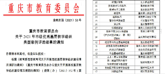 近日,重庆市教委下发《关于2021年市级优秀基层教学组织典型案例评选结果的通知》(渝教高函〔2021〕53号),重庆财经学院“经济学科专业基础课程组”成功获评,成为重庆市教委公布的48个典型案例之一。