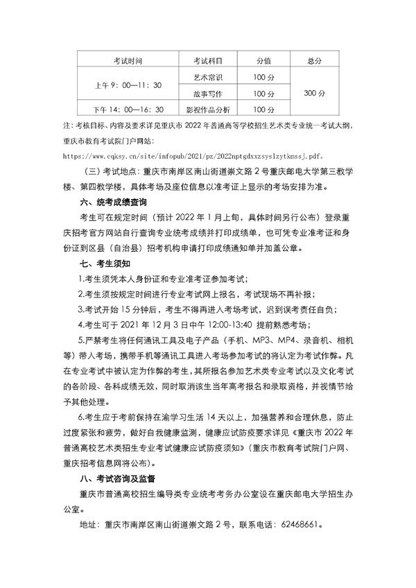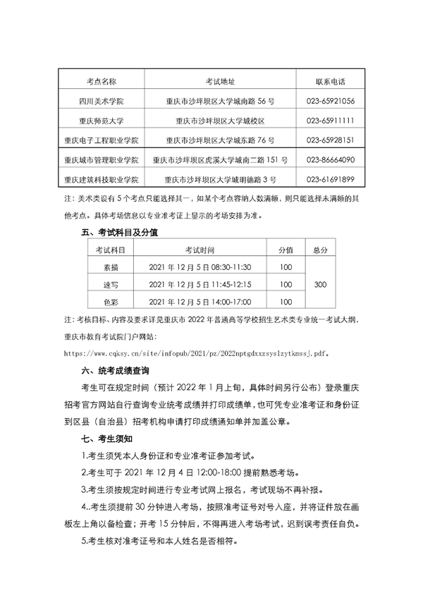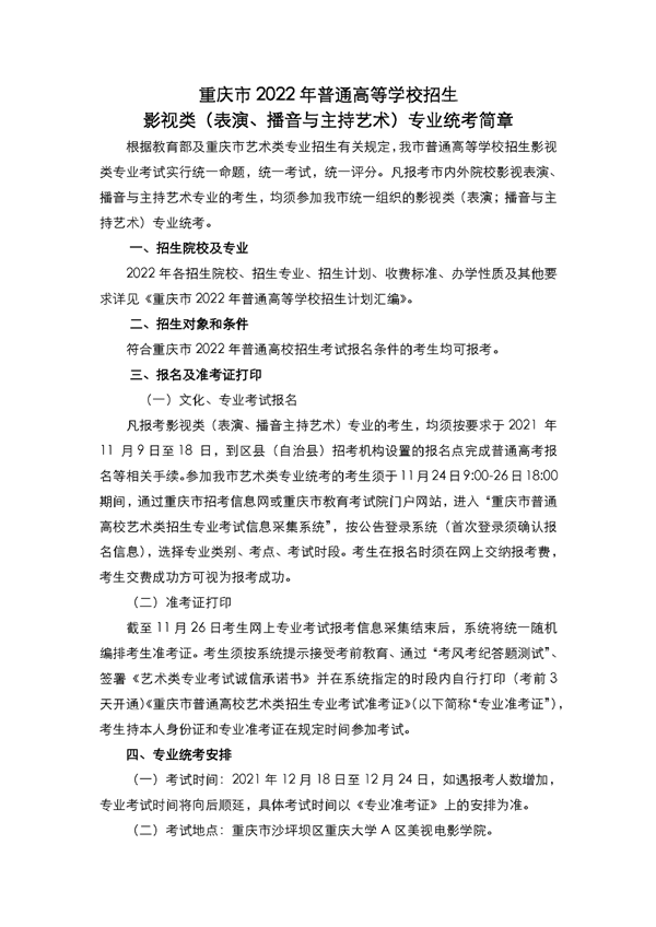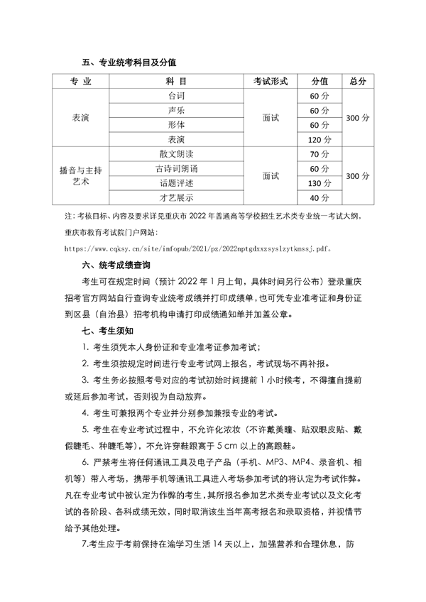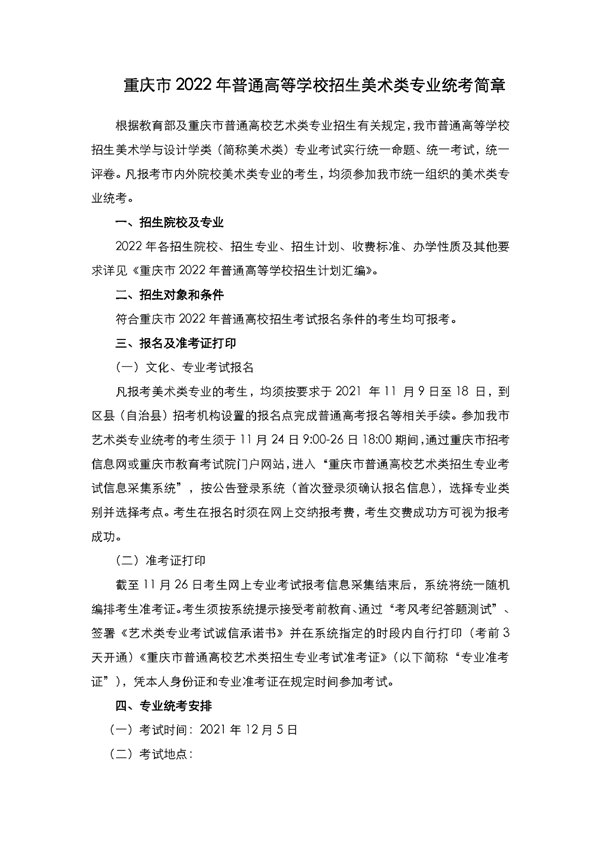 重庆市2022年普通高校艺术类招生专业考试将在12月进行,专业统考共设5个类别:美术学与设计学类、音乐类、编导类、影视类、舞蹈类,一起来看各类别的专业统考简章。