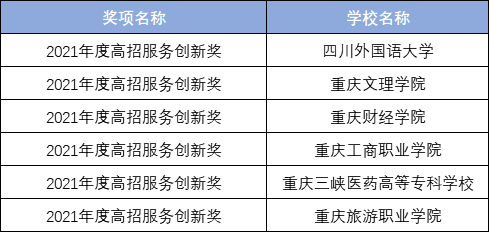 (重庆“2021年度高招服务创新奖”获奖学校名单)