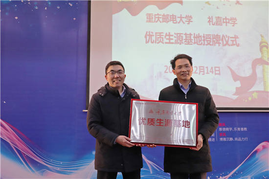 在疫情防控常态化背景下,学校严格落实防控措施,重庆市礼嘉中学校学生在学校的有序组织下进入活动会场。讲座正式开始前,重庆邮电大学授予了重庆市礼嘉中学校优质生源基地牌匾,对礼嘉中学的人才培养质量表示肯定,也促进了两校合作交流新发展。