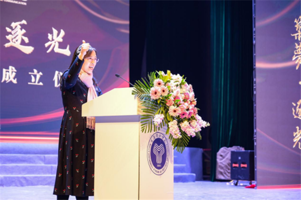 中国新商科大学集团执行董事、常务副总裁王征首先对莅临现场的领导表示感谢,她相信在专业人士的助力下,音乐剧中心定会实现高起点发展高质量创作。其次感谢了一路走来强大的音乐剧老师团队,她相信有他们的带领、陪伴和教育,移通学子能够通过音乐剧看见别样的风景。她还感谢了选择移通、热爱艺术的同学,她希望在表演音乐剧的同时,去探索、去发现和感觉。“十年磨一剑。今天音乐剧中心的成立,移通人将用音乐剧创作,去描绘和表达,培育心灵、体验人生、洞察世界、向美而生。”