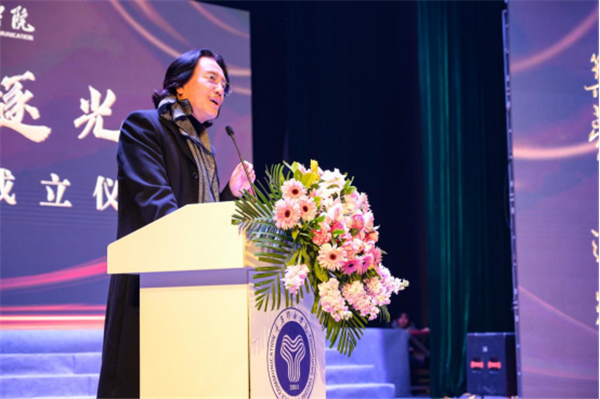 12月21日晚19:00,重庆移通学院筑梦·逐光音乐剧中心成立仪式于缤果大剧院隆重举行。中国著名音乐剧制作人李盾,著名音乐剧演员刘令飞,重庆市剧协顾问、评论家作曲家刘健,副主席、歌剧表演艺术家车璐,副主席、编导艺术家赵虎,副主席、戏剧活动家胡音,理事、戏剧理论家邓齐平,秘书长徐冀,重庆市话剧院市场开发部经理胡蝶,中国新商科大学集团执行董事、常务副总裁王征,移通学院副校长周伟、李文豹,各职能部门领导以及兄弟院校教师代表出席启动仪式。