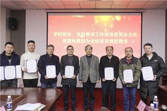 张国林教授为“教指委”成员颁发了聘书。他指出:本科教学工作指导委员会的成立,将助力于推动学校本科层次职业教育试点工作的开展,委员会要发挥好参谋咨询、指导引领的重要作用,进一步提高本科人才培养质量。