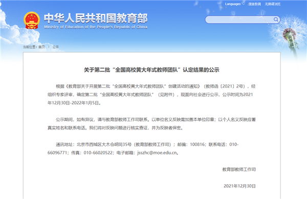 2018年1月,在各地推荐基础上,教育部审核认定了首批201个“全国高校黄大年式教师团队”。