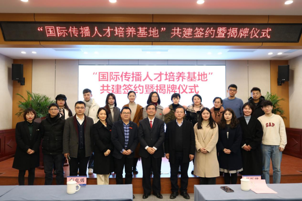 1月7日下午,重庆外语外事学院举行与重庆国际传播中心“国际传播人才培养基地”共建签约暨揭牌仪式。重庆国际传播中心主任赵吾君、主编吴晓、综合部副主任袁嘉若、记者李方旺,校长李克勇、副校长刘毅、相关处室及二级学院负责人、教师代表参加了本次签约暨揭牌仪式。签约仪式由国际传媒学院院长杨莉主持。
