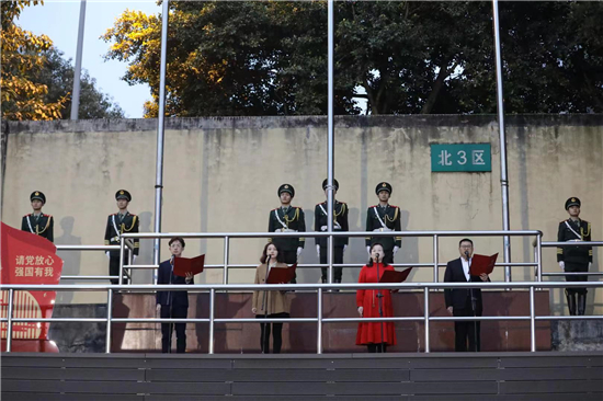 重庆邮电大学一直坚持每周一举行集中升旗仪式,通过升国旗和开展国旗下的演讲等丰富大学生学校思想政治教育载体,深化思想政治教育内容,丰富思想政治教育途径,提升思想政治教育效果。国旗下的演讲涵盖党史、国史、校史和优秀学子先进事迹等内容,通过主题演讲、经典诵读、事迹分享等形式,进一步深化“四史”教育效果,有效激发学生爱党爱国情怀、民族自信心、社会责任感和学习内驱力。