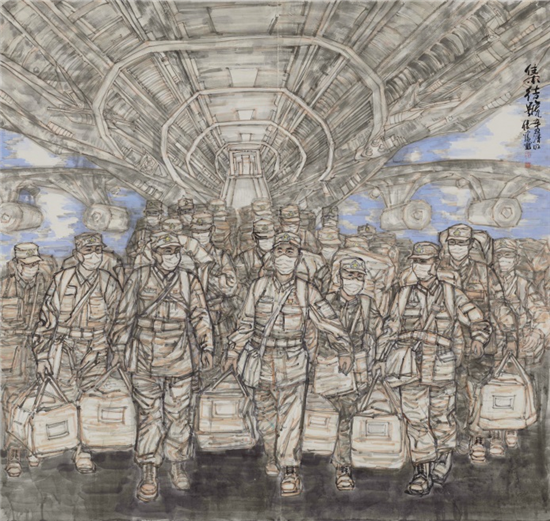 艺术学院党员教师胡佳富抗“疫”作品《集结号》