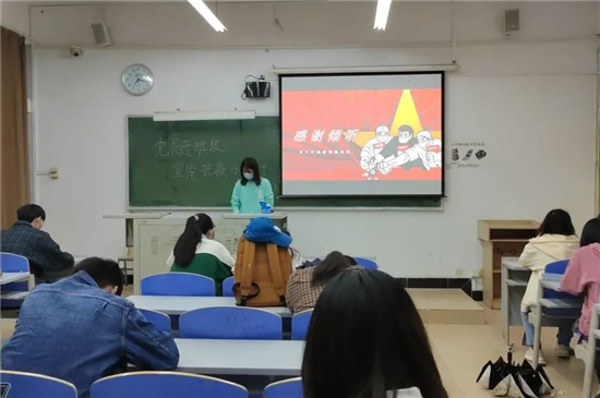 各党总支带领党支部及党员同志开展党员先锋队、党员示范岗“四进”行动,通过一进思想、二进班级、三进宿舍,四进课堂,将疫情防控工作落实落细。