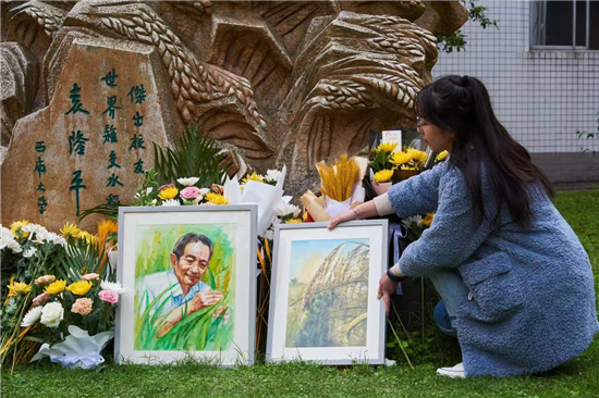 4月2日,袁隆平过世的第一个清明前夕,西南大学学生自发的到校内袁隆平院士的雕像前献花悼念,美术学院的学生还通过画像的方式寄托了缅怀与追思,志愿者们在食堂发起了“光盘”行动,通过分发一些自制的纪念品,鼓励同学们珍惜粮食,做好光盘行动。