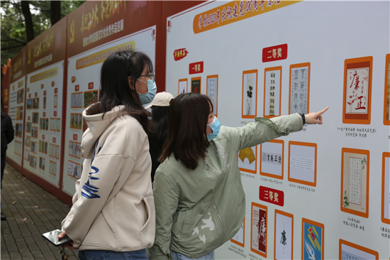 此次巡展由西南大学纪委主办,党委宣传部、纪委办监察处、党委巡察工作办公室承办,在学校南北区樟树林和荣昌校区同步展出,共展览全校师生员工创作的视频、平面、文字类优秀作品131件,吸引了全校师生员工驻足观展。