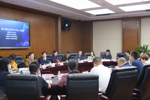 随后,杨燕滨一行与西南医科大学、西南医科大学附属医院、附属中医院、附属口腔医院等用人单位进行座谈。杨燕滨简要介绍了本次访企拓岗活动背景和学校近年来的发展和人才培养以及2022届毕业生的总体情况,各用人单位分别介绍了医院的发展情况以及岗位需求和人才引进相关政策。各用人单位充分肯定重庆医科大学毕业生专业知识深厚、科研技术能力扎实,并对学校在人才培养质量、就业服务等方面提出了有益的意见和建议,期待能招录到更多重庆医科大学毕业生,尤其是高层次学历人才。