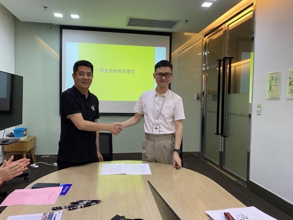 随后,重庆移通学院校长助理陈仲华和重庆金夫人实业有限公司人力总监廖剑分别代表双方签订了校企合作协议书。