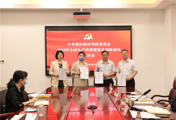为全面落实中央、市委、市委教育工委关于全面从严治党工作决策部署,推进学校全面从严治党向纵深发展,4月27日下午,重庆财经学院校党委在2303会议室召开2022年全面从严治党暨党风廉政建设工作会。学校党委委员、纪委委员、全体中层干部参加会议。会议由校党委委员、校长吴华安主持。