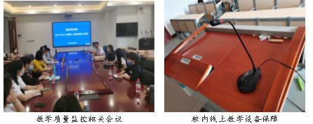 线上线下融合式教学期间,学校高度重视教学运行与教学质量保障工作,多次召开党政联合会议,研究指导教学工作,校长助理崔中山多次前往教学一线指示做好线上线下融合式教学工作,并要求做好随时全面线上教学的准备,最大限度保证教学质量。学校分管教学和督导工作校领导、教务处相关负责人、校教学督导的所有专家,同时开展线下课堂听课和线上“云听课”,对线下和线上教学质量进行全面督查。教务处每日对教学情况进行台账梳理,向学校疫情防控小组提交日报告;配合各二级教学单位做好线上授课教师与学生的沟通工作,确保教师和学生能够正常进行线上教学与学习;加强与学生信息员联系,反馈当前教学模式所存在的问题及建议。