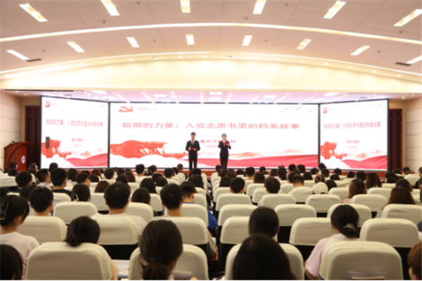 第一课以党委组织部和档案馆联合挖掘的学校老党员入党志愿书里的红色档案故事为题材,分为五个篇章,由档案馆老师和教育学院、材料科学与工程学院、文化遗产学院、卓越教师教育实验班学生,分别讲述和演绎涂铭旌等老党员对党忠诚、无私奉献,坚定信仰跟党走的感人故事。