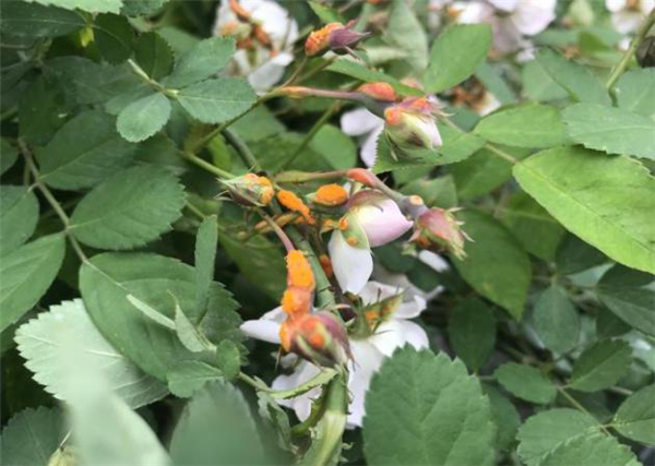 园艺专业为校园蔷薇花防治锈病