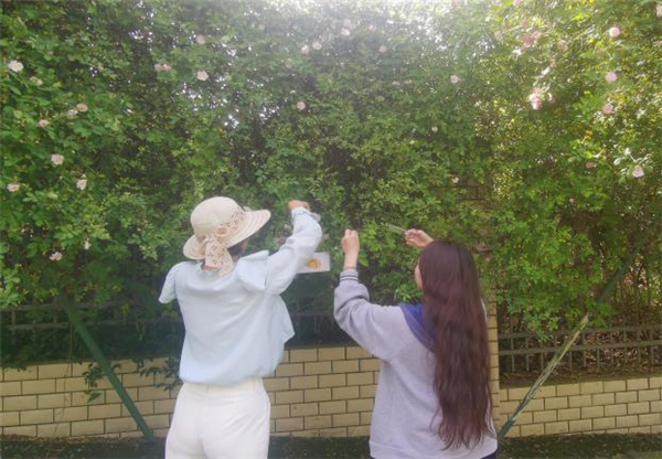 蔷薇花生长势衰弱的原因,如何恢复蔷薇花墙盛景,成为一个亟待解决问题。对此,生物与食品工程学院园艺植物病虫害防治专家,渝东北特色生物资源开发利用工程中心党支部甘丽萍教授带领2020级园艺班同学,结合《园艺植物病虫害防治实验实训》课程内容,对蔷薇花的生长现状和病虫害现状进行了调查。经现场查看、拍照,采样鉴定,最终确定蔷薇花正受锈病感染,且病情指数高达45%,急需防治。随即,甘丽萍充分发挥专业优势,带领同学们通过物理方法(人工修剪)和化学方法,在学校后勤处的协助下,对重庆三峡学院蔷薇花锈病进行了防治,在一定程度上控制了锈病的蔓延与扩散。